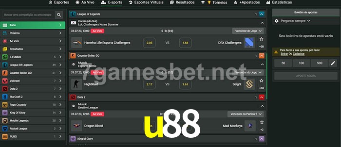 A aposta u88 oferece aos jogadores a experiência mais conveniente de apostas em eSports!